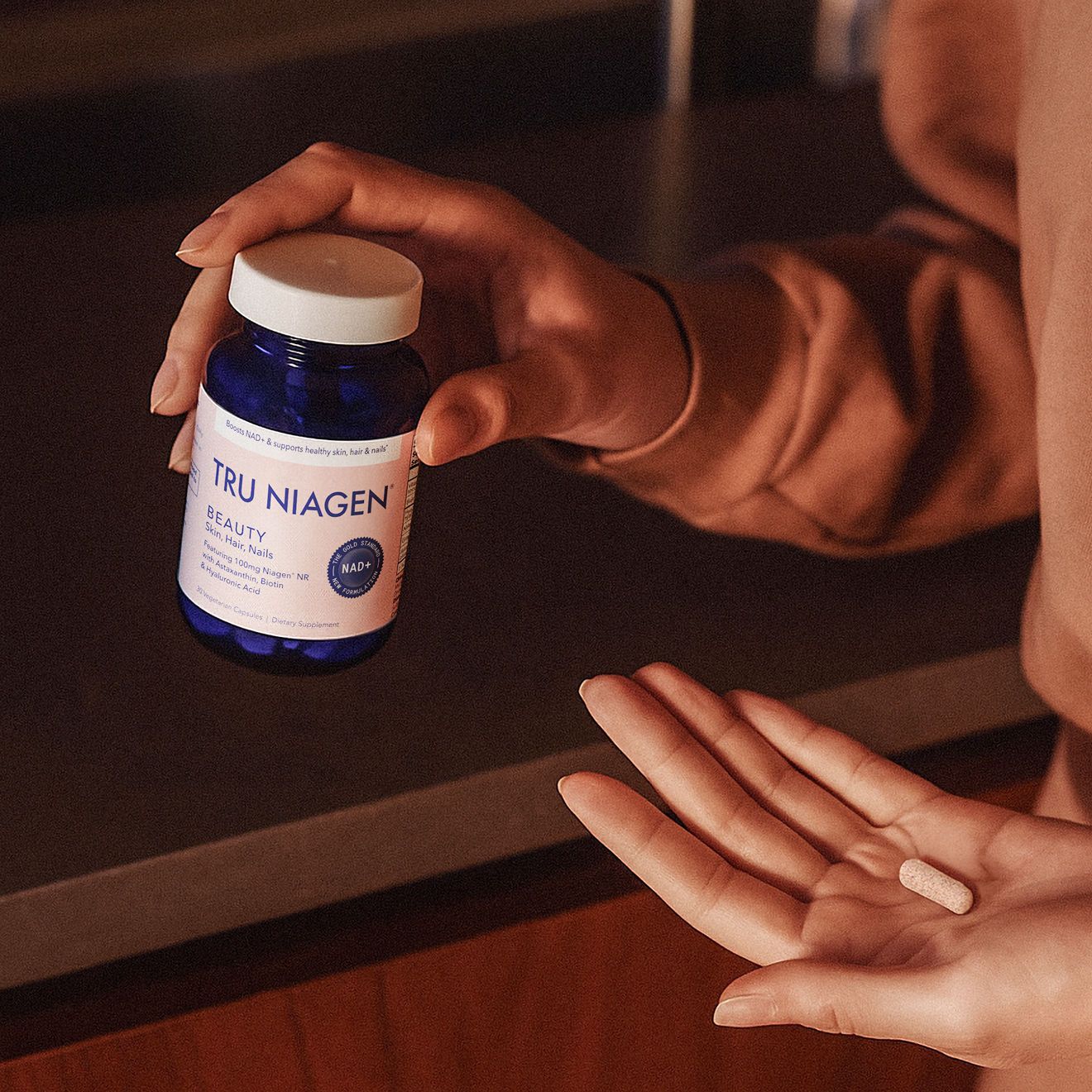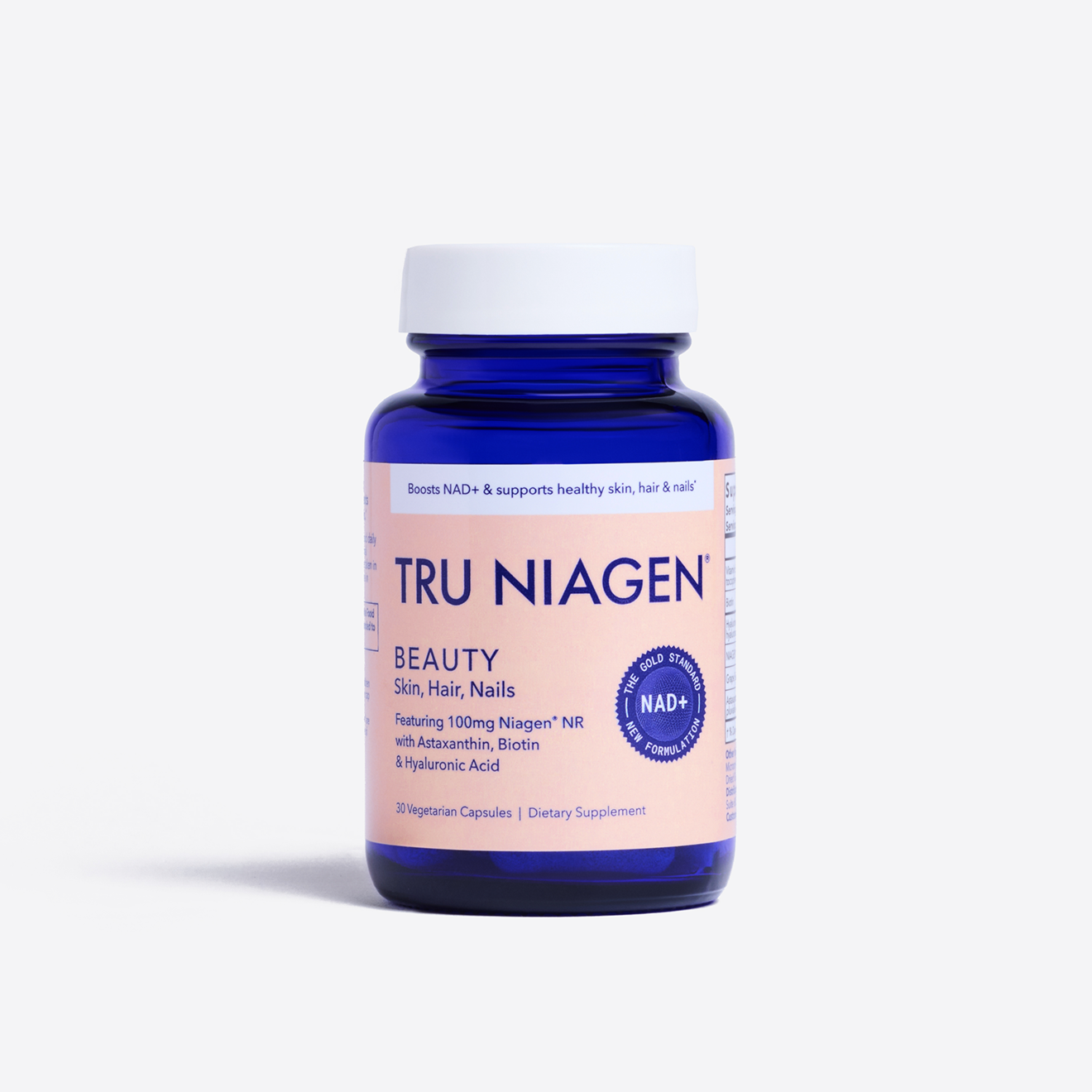 Meet the newest innovation from the most trusted brand in NAD+ science: Tru Niagen Beauty—the only U.S. beauty supplement powered by NAD-boosting Niagen®. This formula supports a healthy cellular foundation for skin, hair, and nails by combining patented NAD+ support with a precision blend of beauty actives.