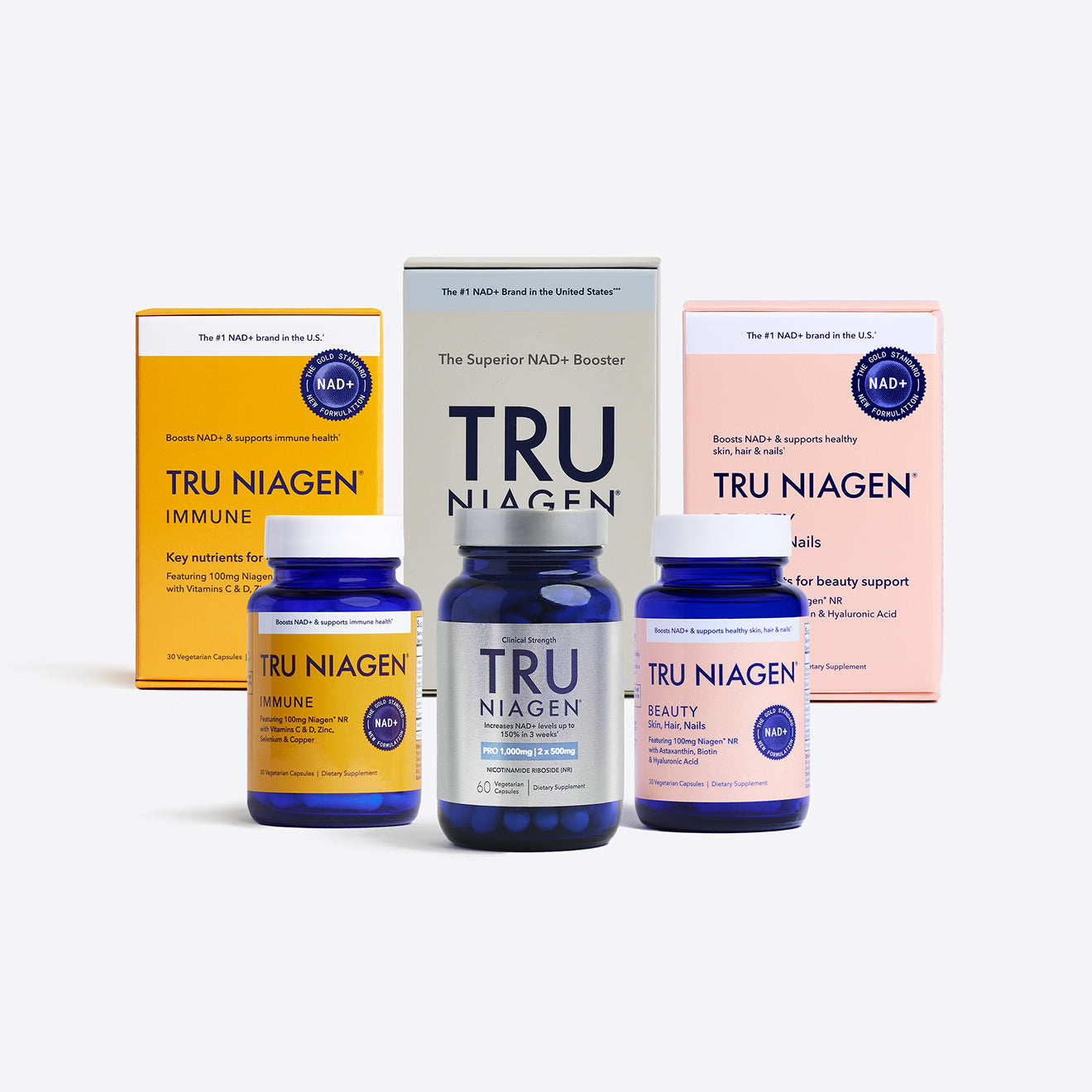 Tru Niagen Beauty combines NAD+ with clinically studied actives for healthy skin, hair, and nails.